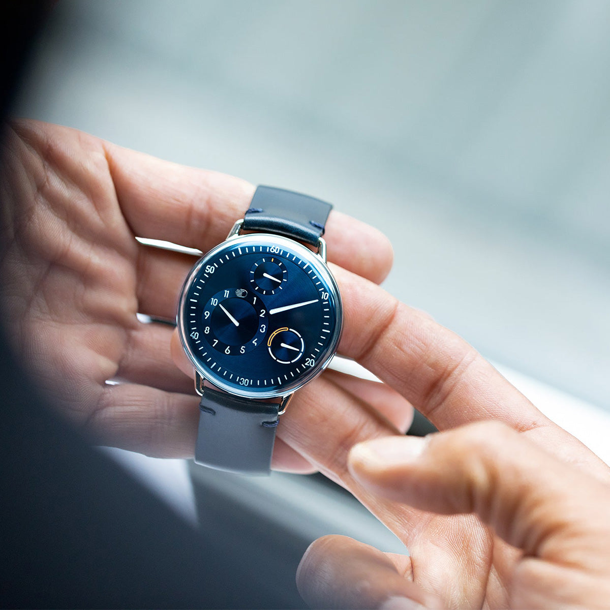 - Patented ROCS 1.3 - Ressence Orbital Convex System - module driven by the minute axle of a customised 2892 base calibre