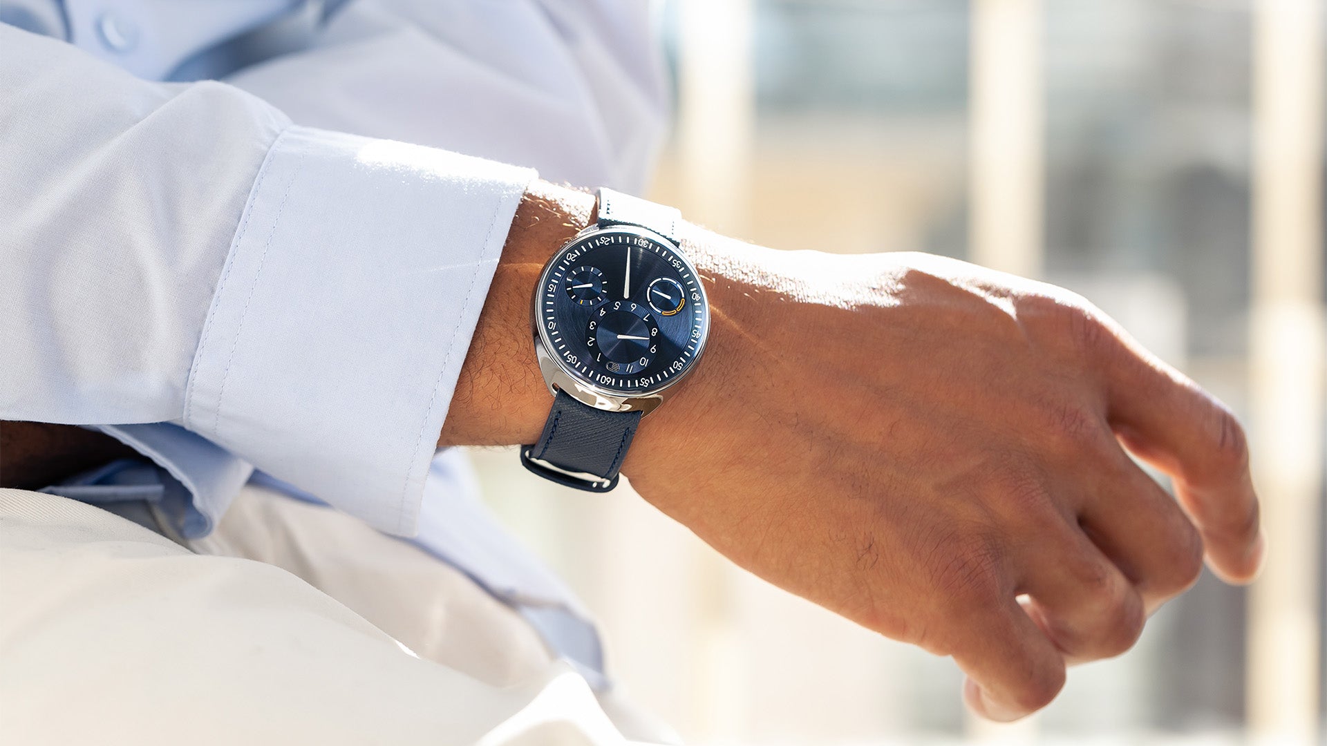 - Patented ROCS 1.3 - Ressence Orbital Convex System - module driven by the minute axle of a customised 2892 base calibre