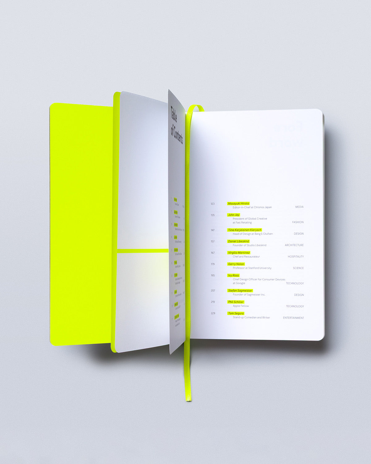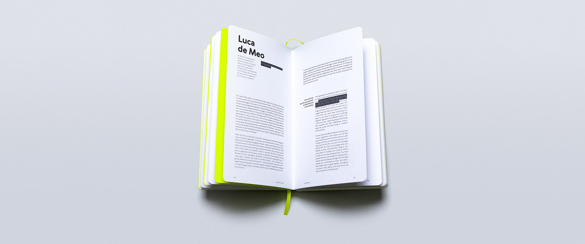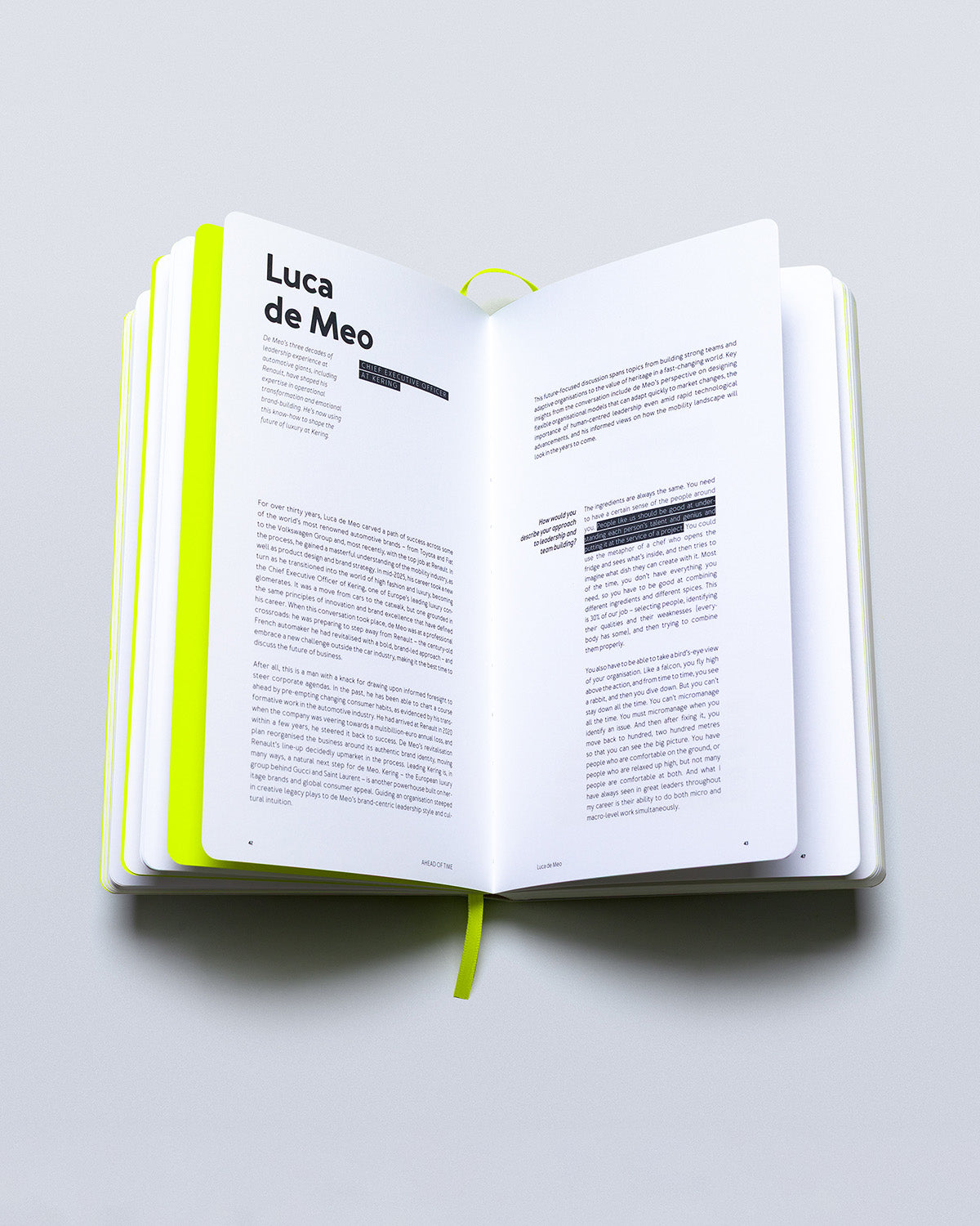 Der opulent produzierte Titel, entstanden in Zusammenarbeit mit dem belgischen Verlag Luster und gedruckt in Italien bei der renommierten Trento Printer, umfasst über 230 Seiten ausführlicher Gespräche mit 20 Visionären aus einem breiten Spektrum von Branchen.