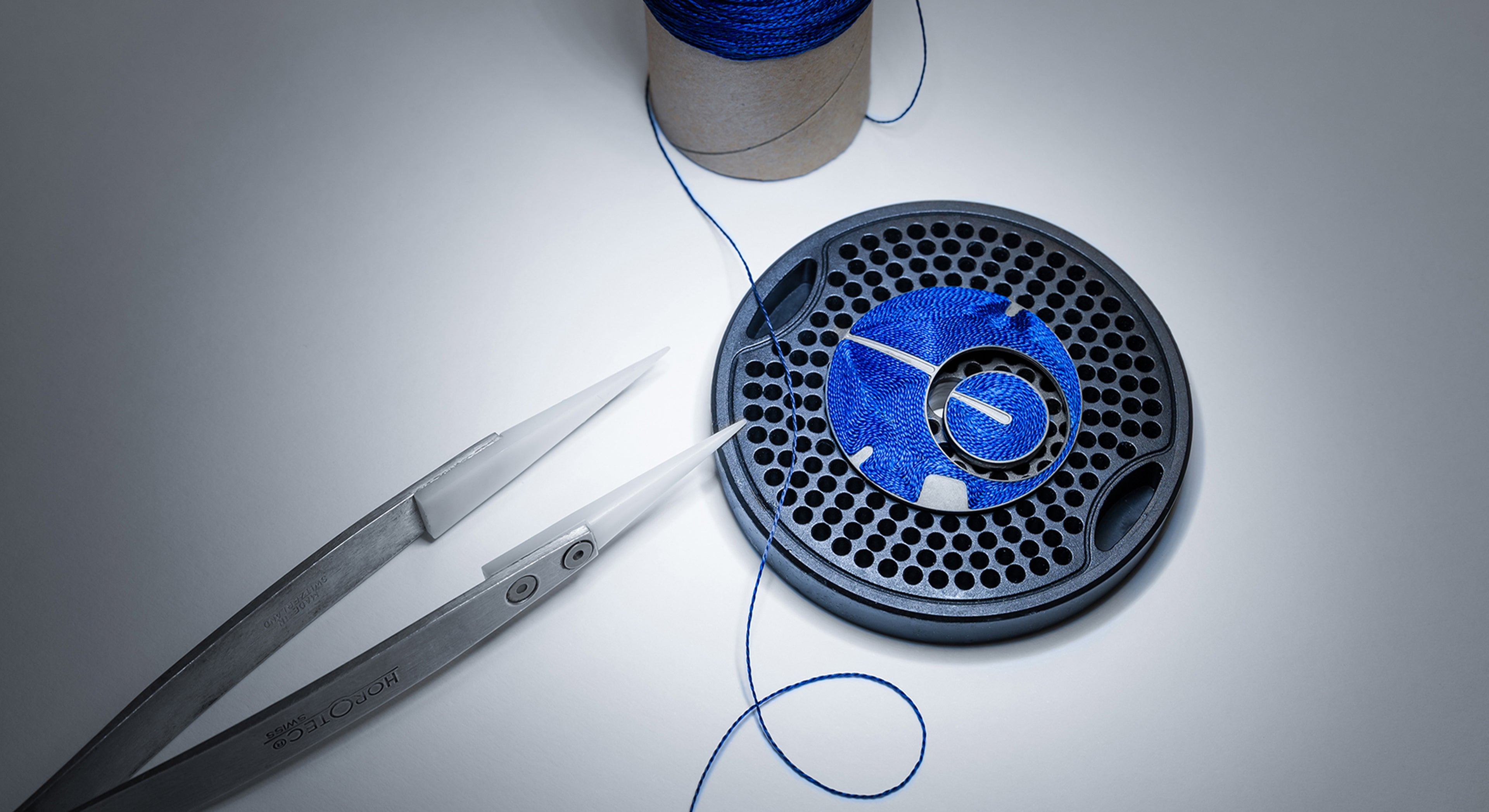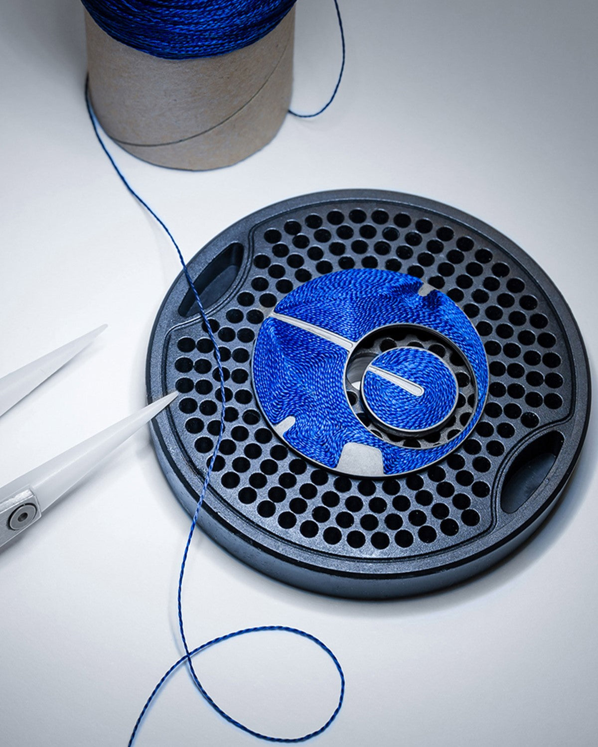 Woven from 2.5m of indigo-dyed silk thread, these dials mark our first collaboration with Swiss Arts & Métiers artisans, each requiring two days of meticulous assembly.