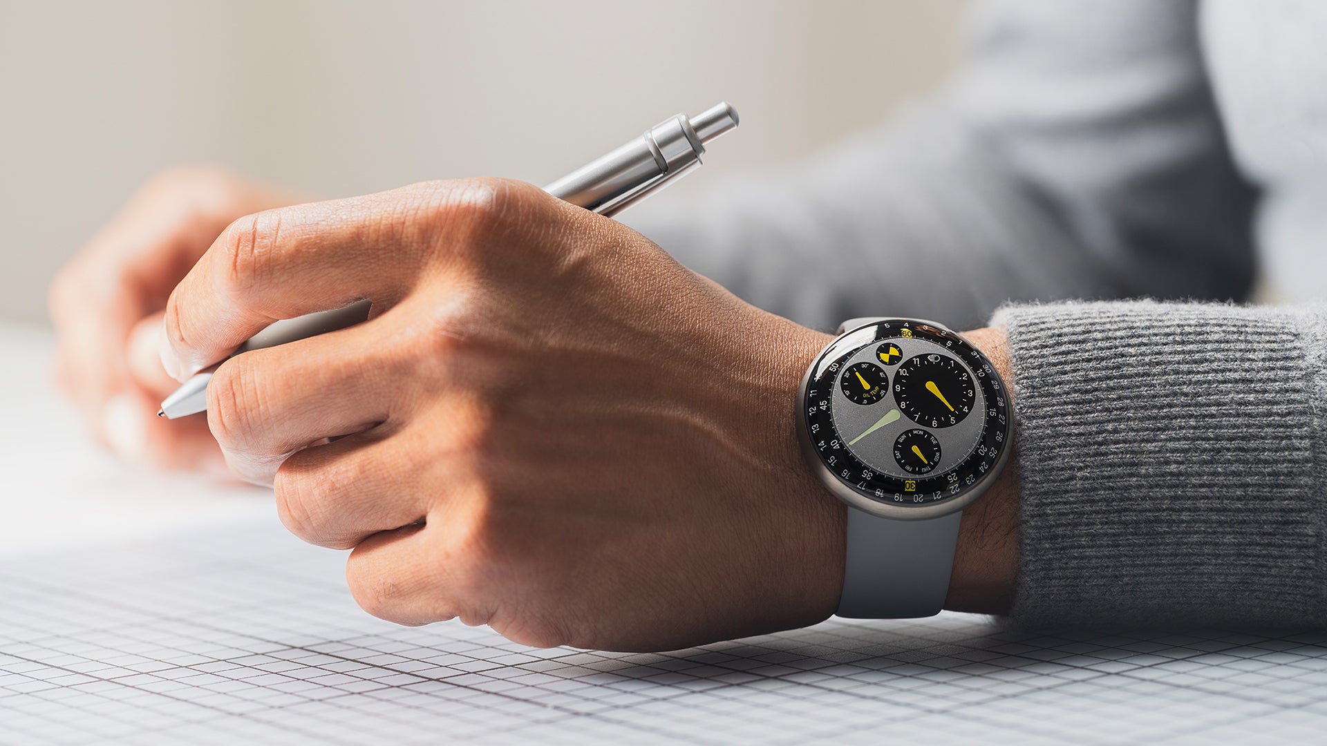 オリジナルのペブルの謎がさらに深まりました。このアップデートされたレッセンスのアイコンは、デジタルスクリーンを彷彿とさせる、さらにミニマルで非物質的な手首の体験のためにグラフィックゲームを高めています。