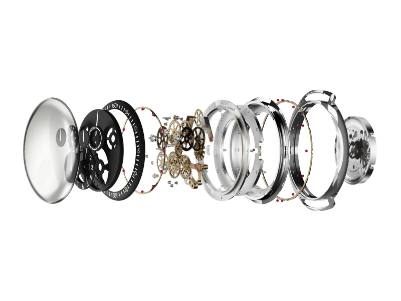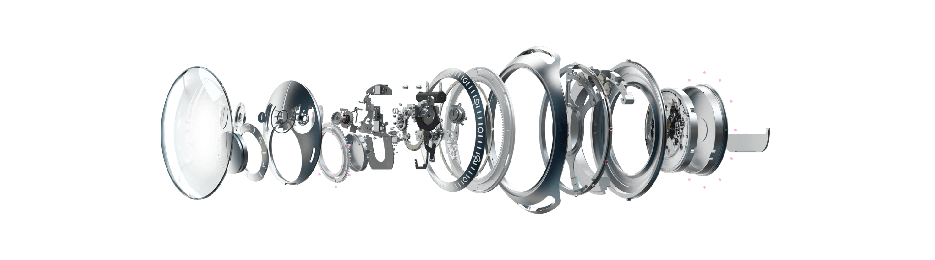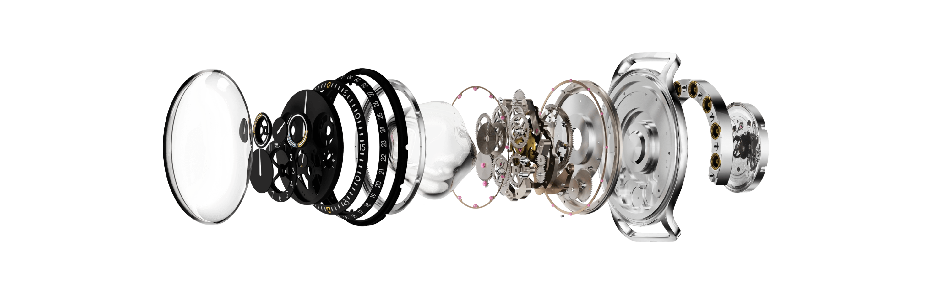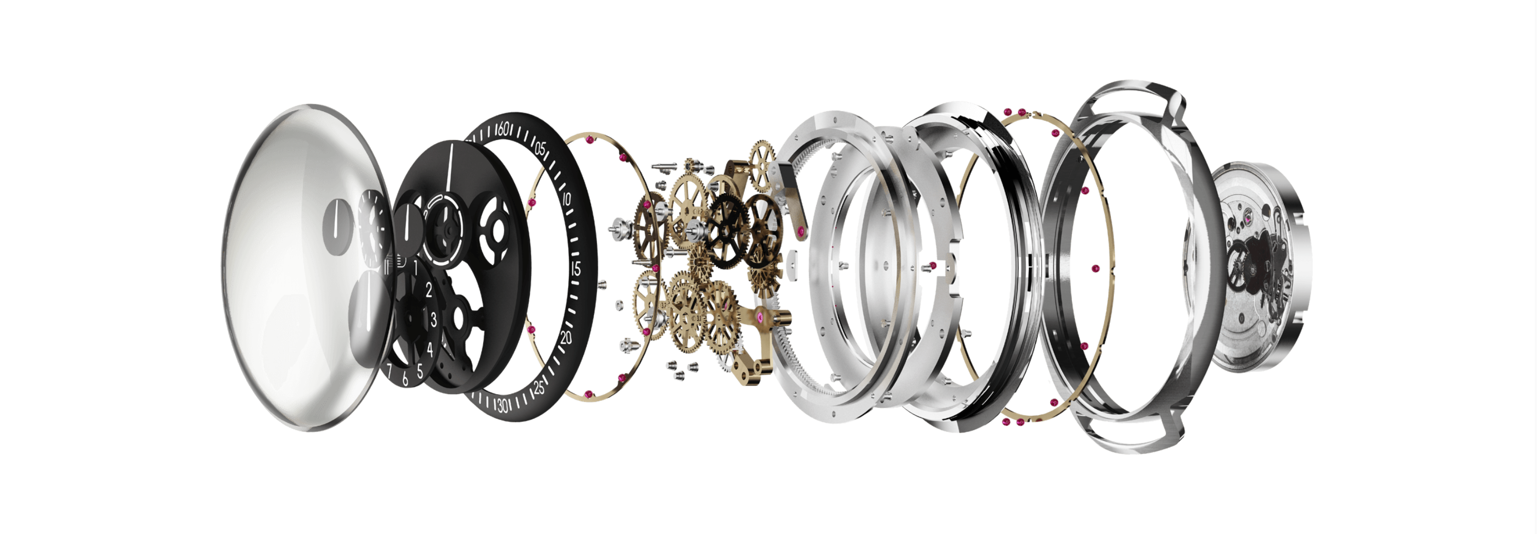 developed by us, Orbital, because that is how the discs forming the dial move, Convex, since each of the discs are curved, as are the sensuous, organic lines of the entire watch, and System because it is a mechanical module.