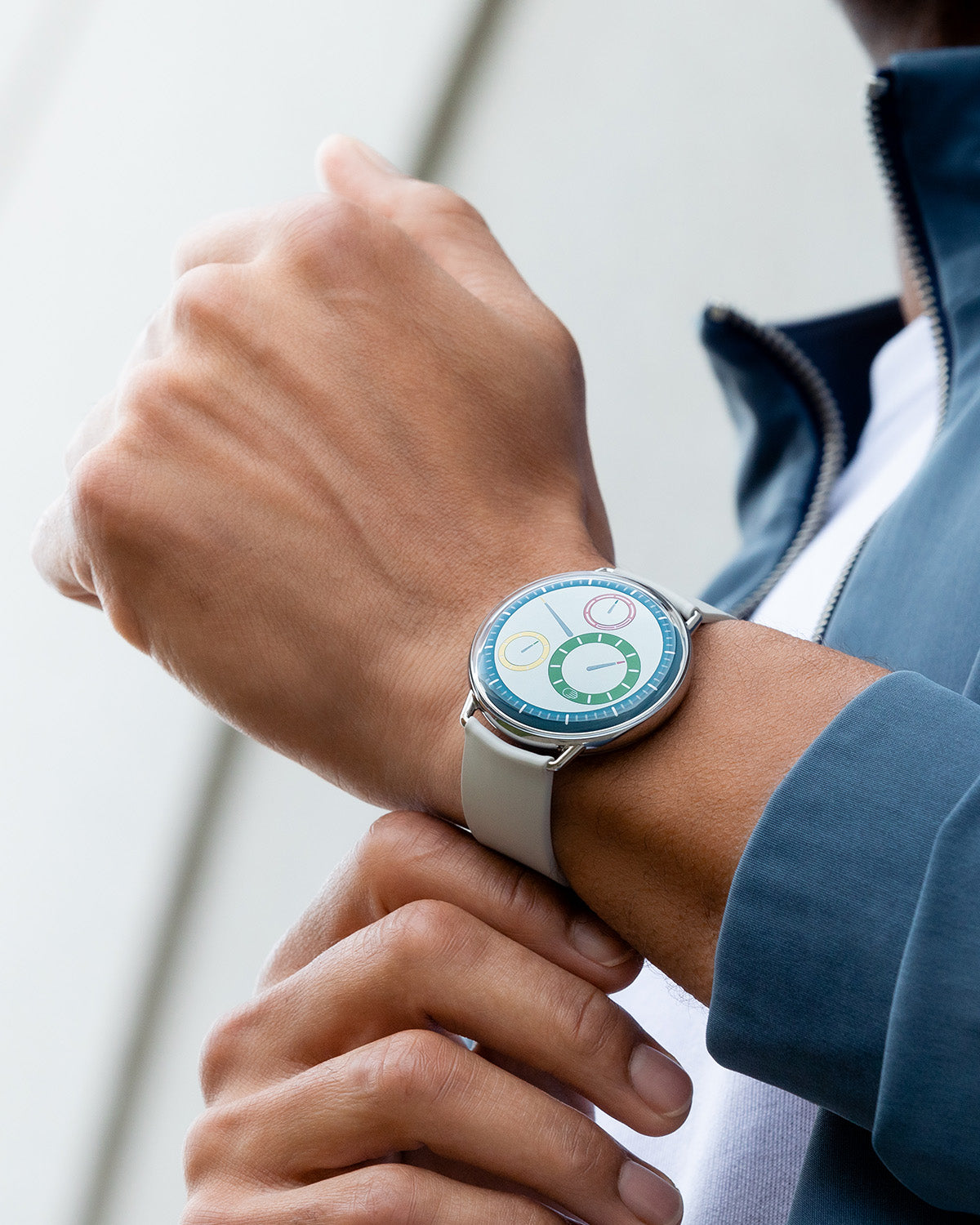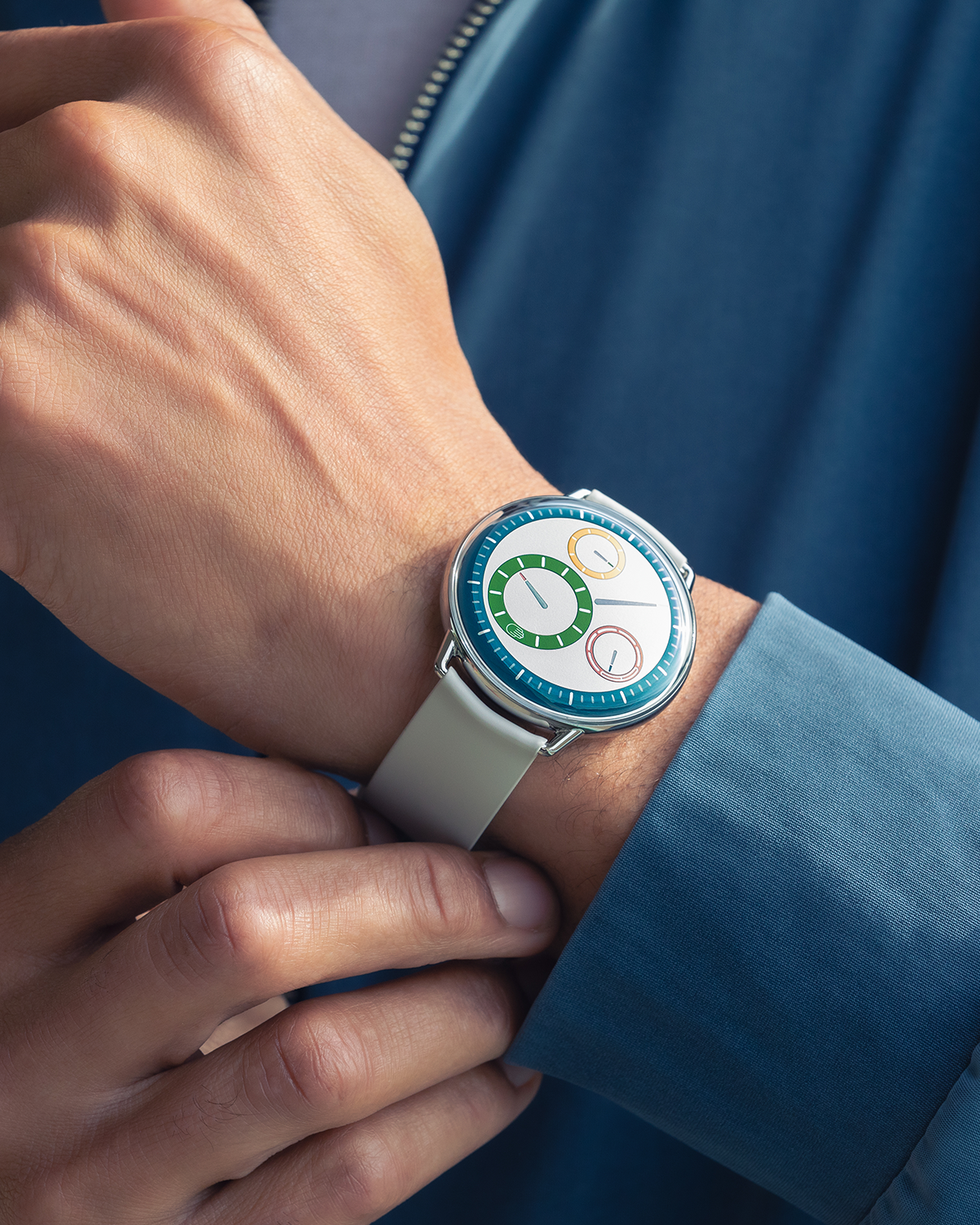 Perpetuating Ressence’s ergonomic design, the TYPE 1° Round features revolving discs that display time in a bi-dimensional format by means of the Ressence Orbital Convex System (ROCS), allowing hours, minutes, seconds and days to orbit each other.