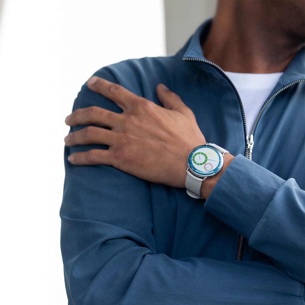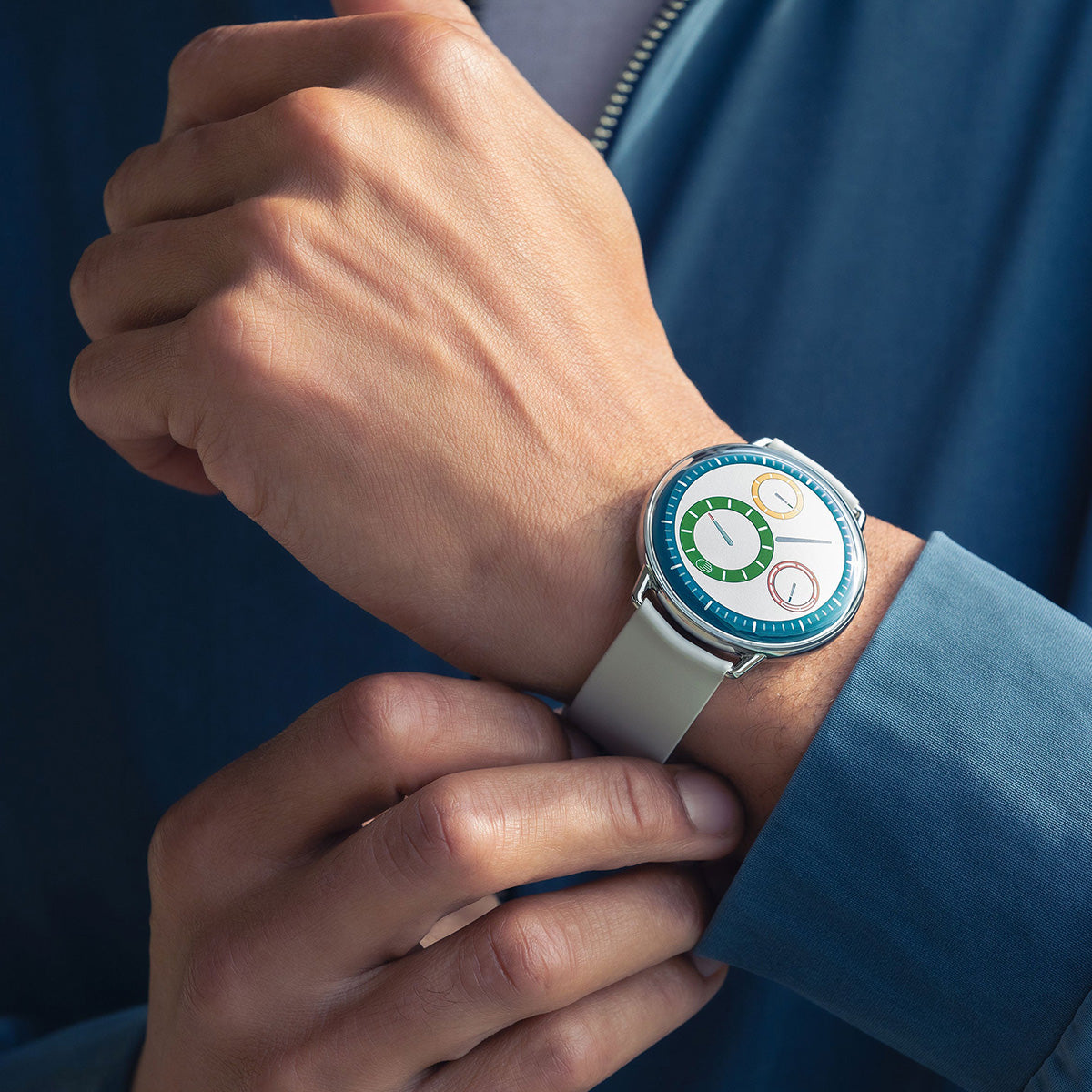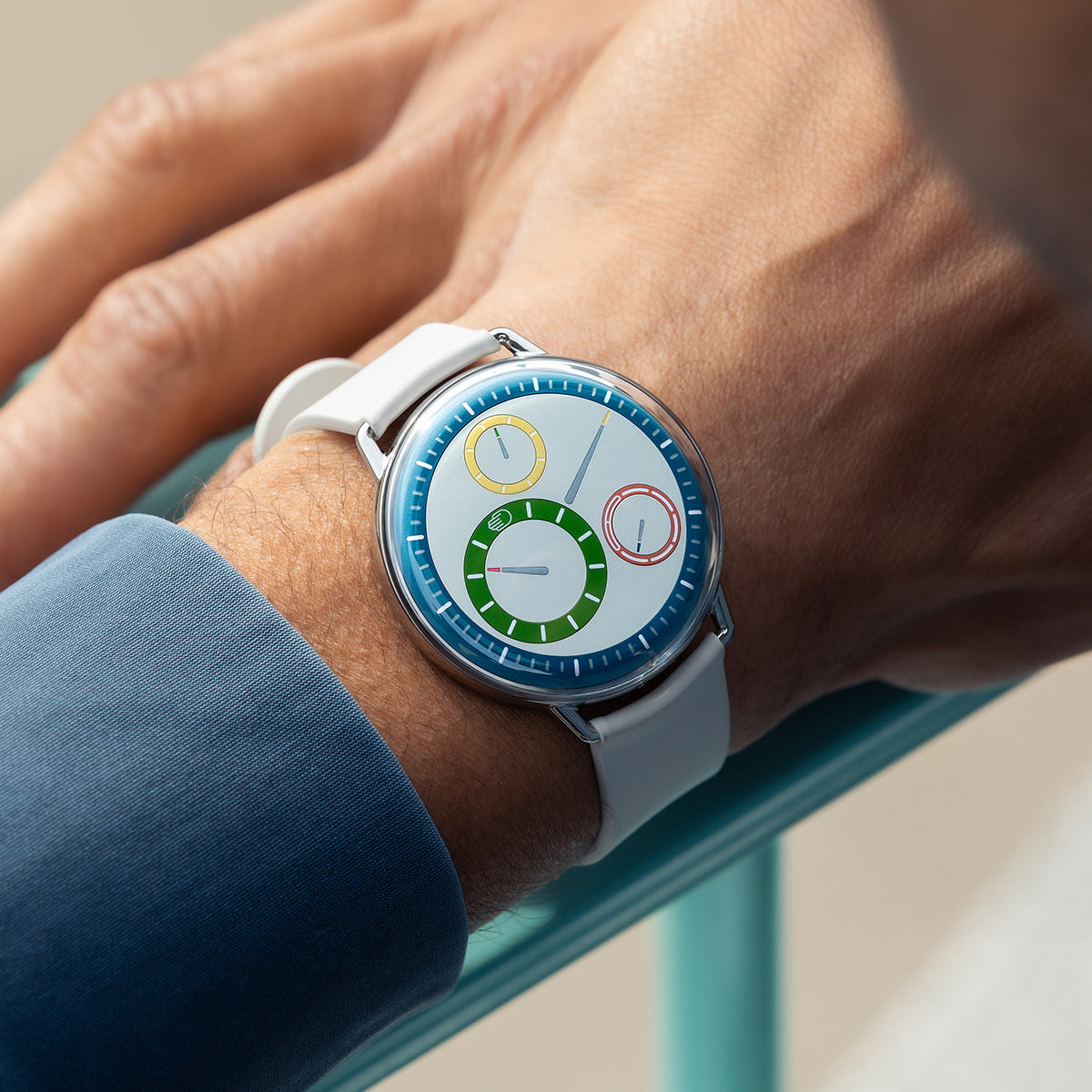 - Patented ROCS 1.3 - Ressence Orbital Convex System - module driven by the minute axle of a customised 2892 base calibre