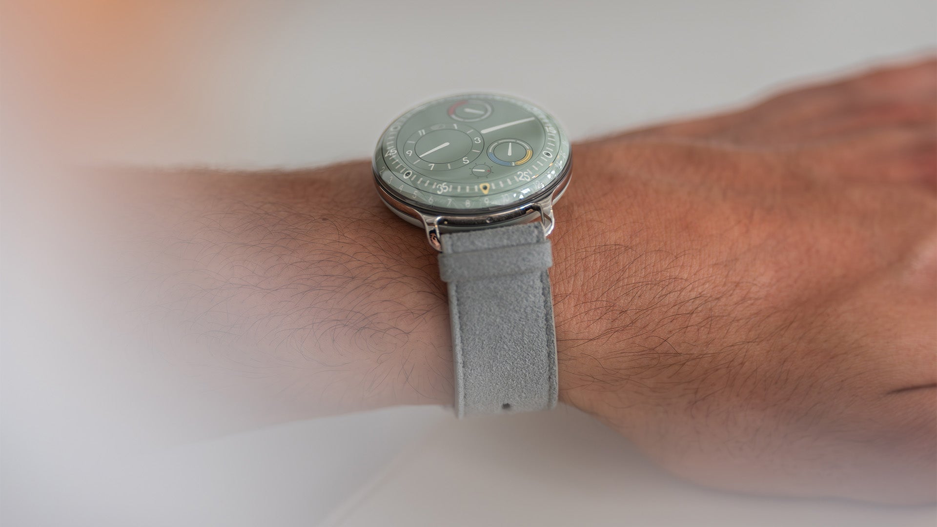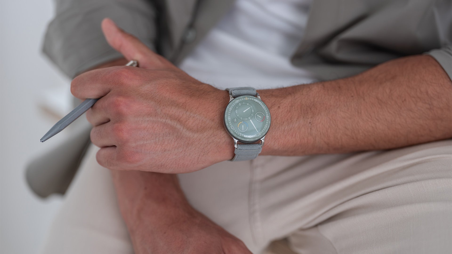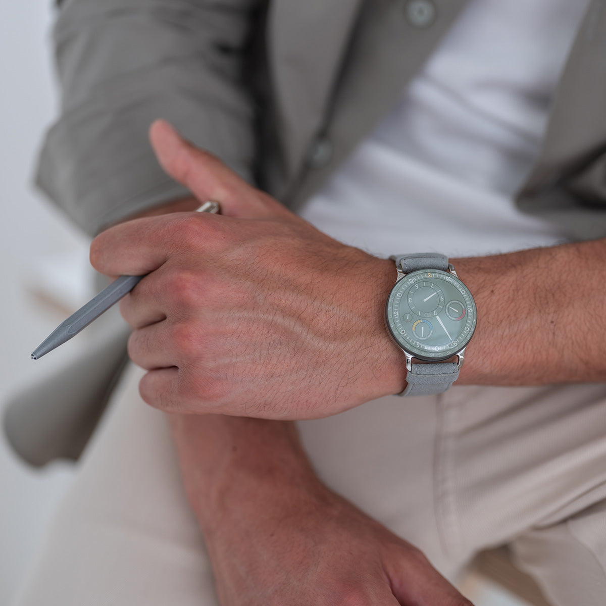 - Patented ROCS 3.5 - Ressence Orbital Convex System - module driven by the minute axle of a customised 2824/2 base calibre