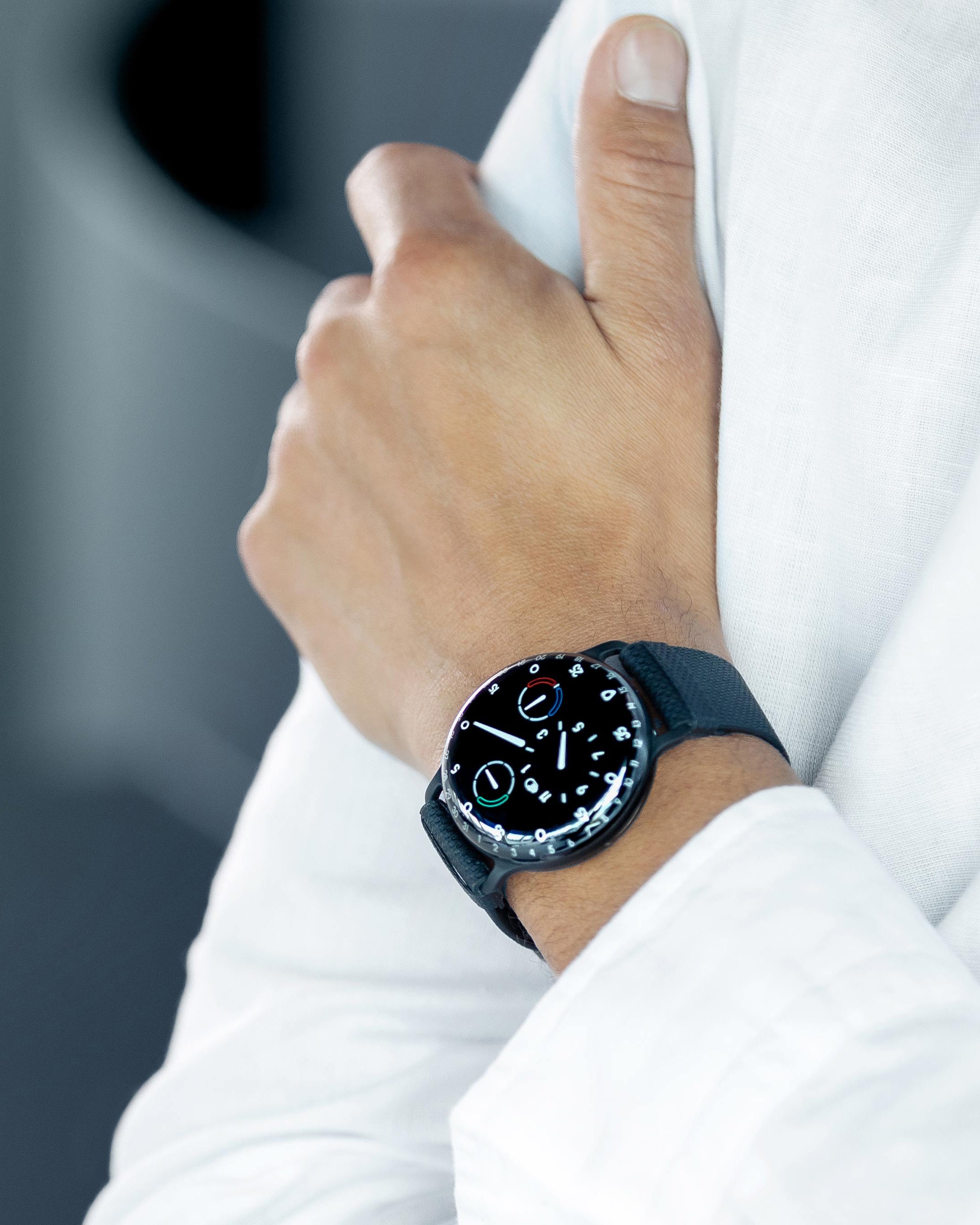 This almost pitch-black edition truly showcases the magic of our flush rotating discs. Whenever the dial gets in motion, wonder occurs.